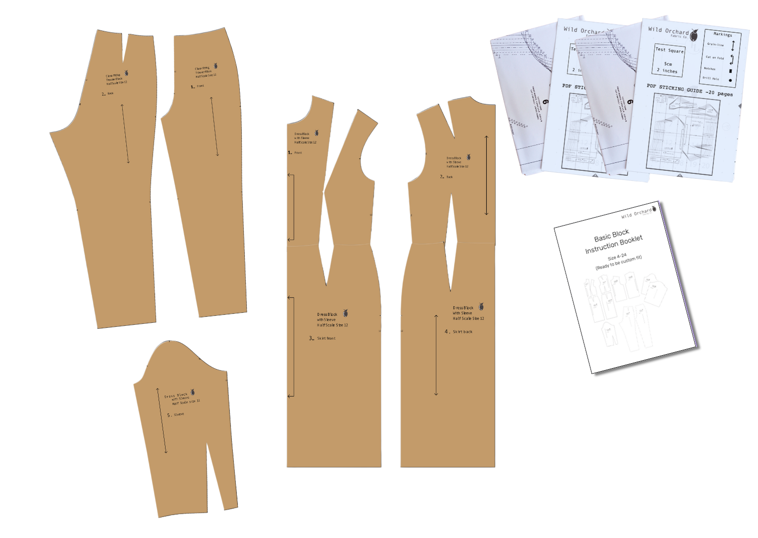 Basic bodice, skirt, sleeve, and trouser blocks are included, ready to print at home or at a copy shop. These are the foundation of your perfectly fitted garments.